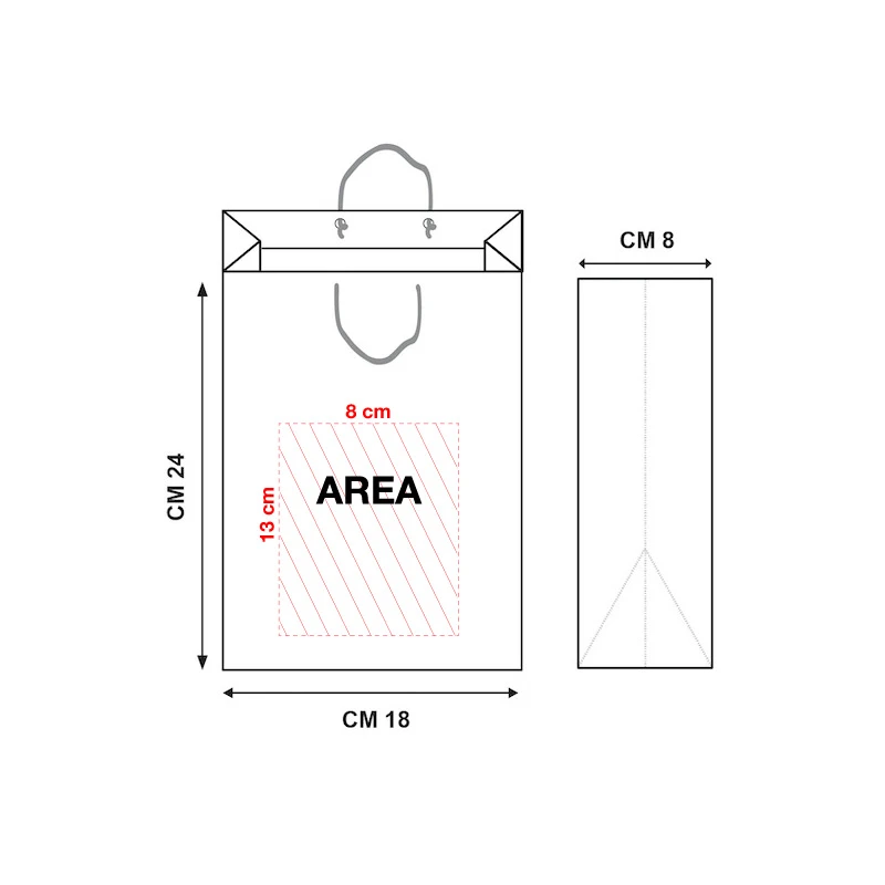 Dimensioni 18 cm (larghezza) + 8 cm (soffietto) x 24 cm (altezza)