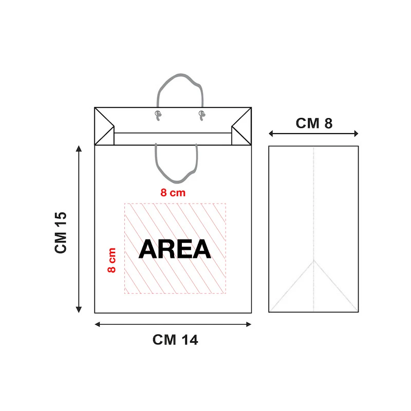 Dimensioni 14 cm (larghezza) + 8 cm (soffietto) x 15 cm (altezza)