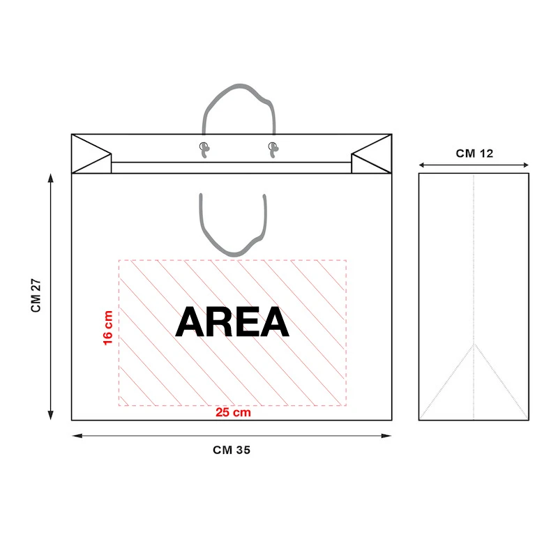 Shopper personalizzate con stampa su entrambi i lati inclusa nel prezzo, modello lusso realizzato in carta patinata da 190 gr. con plastificazione opaca, maniglie in cotone annodate e rinforzate con uno spesso cartoncino nei risvolti e nel fondo.