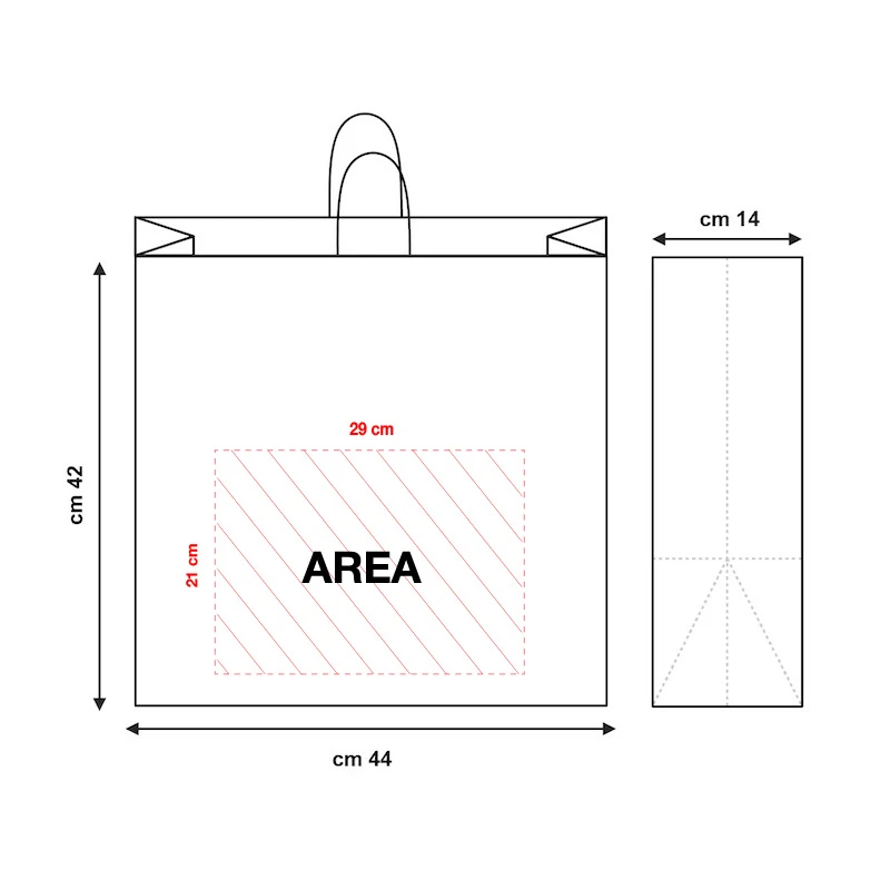 Dimensioni 44 cm (larghezza) + 14 cm (soffietto) x 42 cm (altezza)