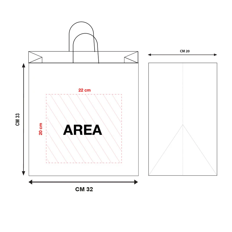 La busta è realizzata in carta kraft bianca 100 g/m² oppure in carta kraft avana riciclata 100 g/m², materiali biodegradabili e resistenti. I manici a cordino in carta intrecciata assicurano una presa solida, mentre la stampa su entrambi i lati inclusa nel prezzo con impianti gratuiti permette una personalizzazione chiara e ordinata del brand.