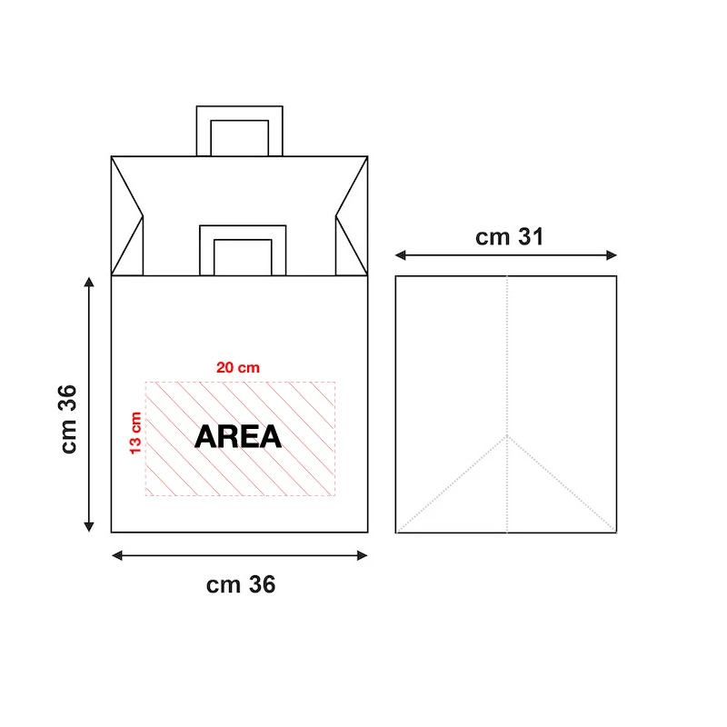 La busta è realizzata in carta avana rigata 100 g/m² con manici a piattina ed è progettata per sostenere fino a 6 kg. La stampa personalizzata su entrambi i lati, con impianti gratuiti, permette di valorizzare logo e identità visiva, trasformando ogni consegna in uno strumento di comunicazione efficace.