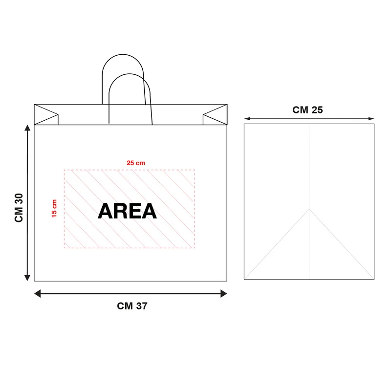 Il formato 37×25×30 cm offre una base larga e un volume maggiorato, ideali per food delivery e packaging alimentare strutturato. Supporta confezioni rigide, prodotti da pasticceria, vaschette termosaldate e box per asporto, assicurando un trasporto sicuro e una presentazione curata.