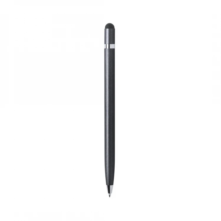 Caneta esferográfica com ponteira touch, abertura rotativa e corpo em alumínio liso. Detalhe cromado. Novas cores disponíveis: dourado, rosa, prata e grafite com acabamento brilhante. Cor branca com acabamento fosco. Tinta azul.